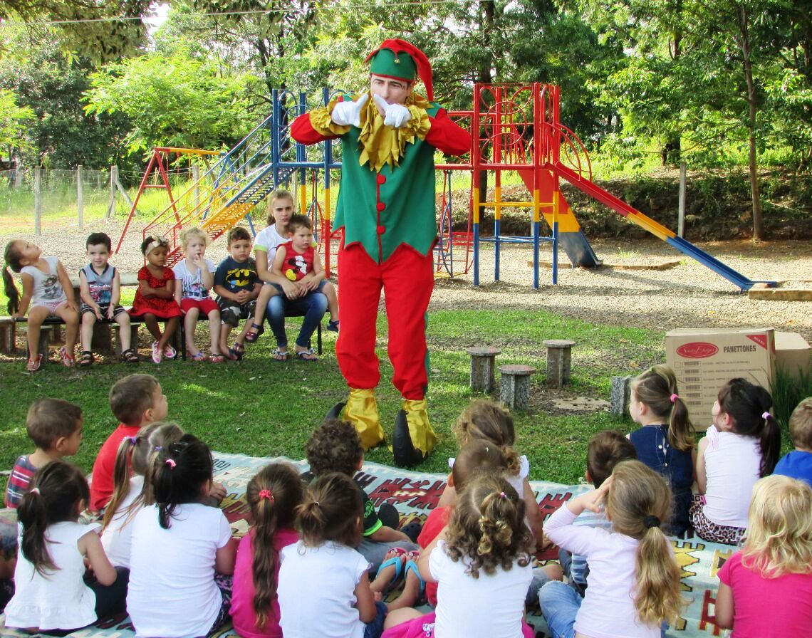 Cerca de 140 crianças do Ceim Brincar e Aprender II, Chapecó/SC, foram surpreendidos com personagem mágico, um Duende. E para abrilhantar o momento, foram realizadas dinâmicas lúdicas e Contação de história. Após a ação cultural, as crianças ganharam cestas com doces, provenientes de parcerias entre amigos.